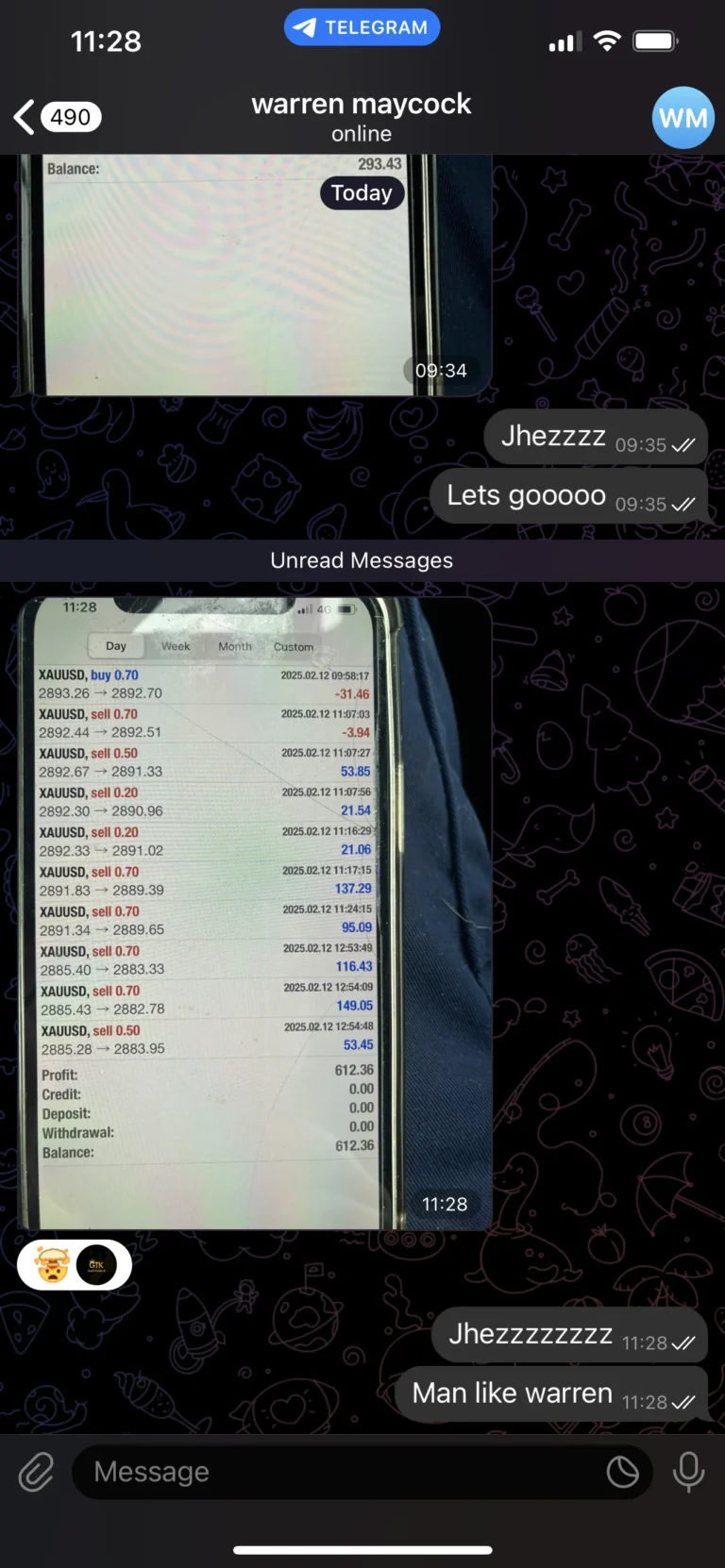 "Only started trading with Kay today and his experience in the markets along side his transparency makes understanding and placing his trades easy and quick so that everyone can make profit. I myself have already made a profit even though I only started today. Joining in on this will be the best decision you’ve made."